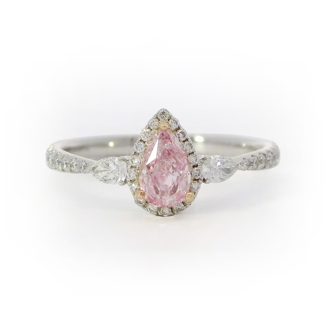 | Diamante Rosa talla pera 0,40 cts – Diamantes Blancos talla pera 0,72 en total | |