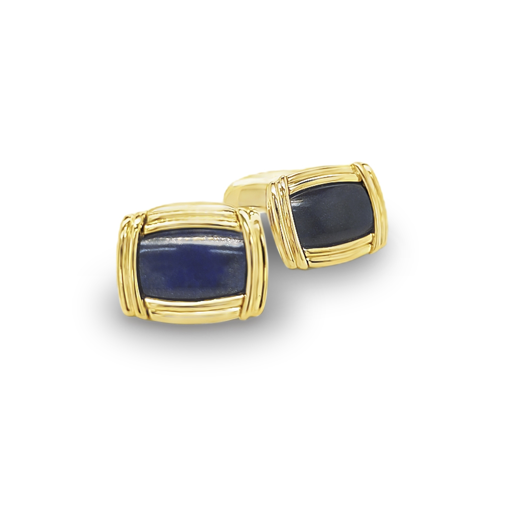 Gemelos en oro amarillo de 18 quilates combinado con lapislázuli.