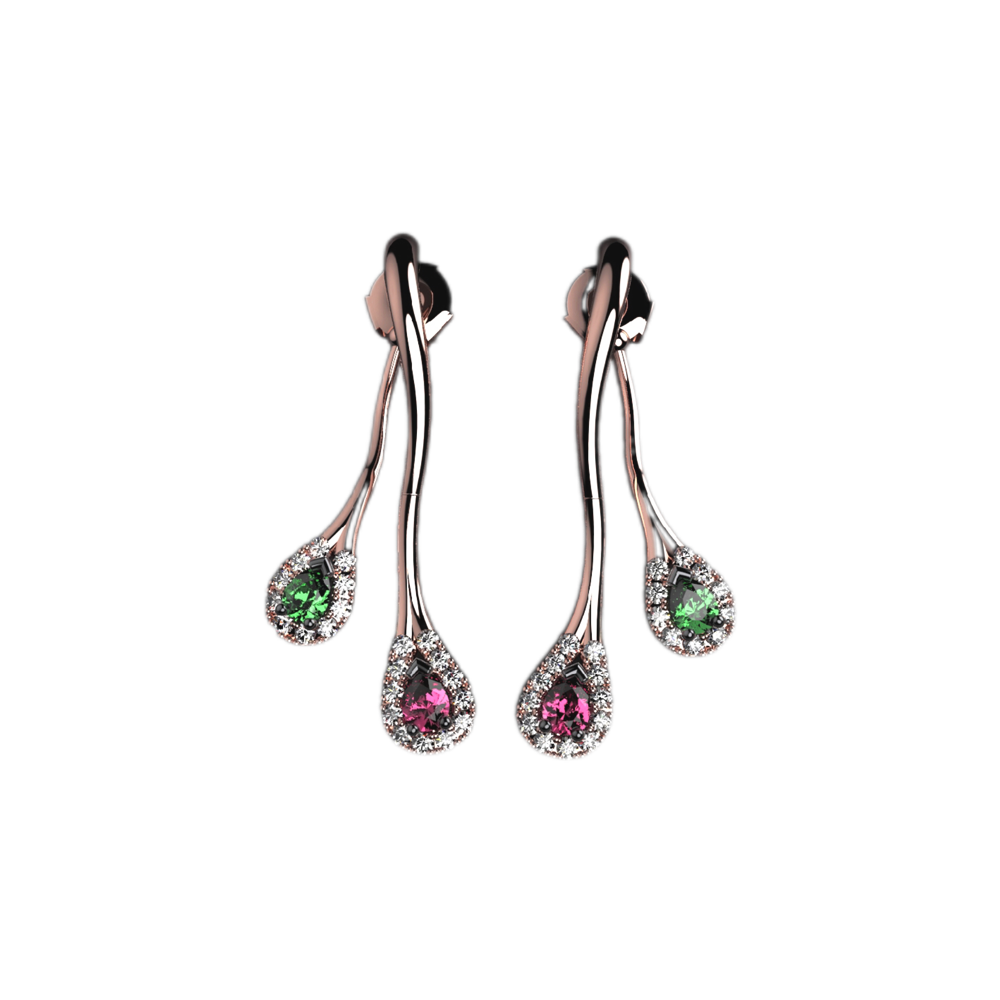 Zafiro rosa – Zafiro verde 0,85 cts – Diamantes 0,29 cts | |