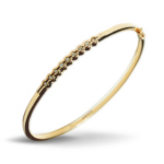 Esta elegante pulsera presenta un diseño cómodo y moderno, con una estructura rígida con diamantes engastados. Combina la pureza de los diamantes con la calidez del oro rosa, creando una pieza versátil y atemporal que puede llevarse tanto en eventos formales como a diario, aportando un toque de elegancia.