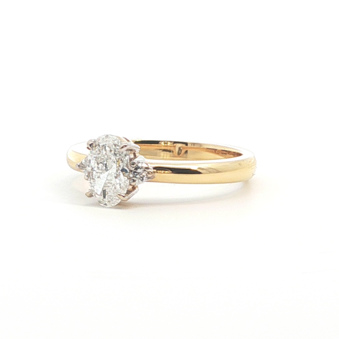 Este elegante anillo oro su color de 18 K con diamante de talla ovalada de 0,70 cts. certificado GIA como pieza central. La montura de oro amarillo realza el brillo del diamante, creando una armonía visual cautivadora. Perfecto para celebrar momentos especiales, simboliza un compromiso eterno y un estilo refinado.
