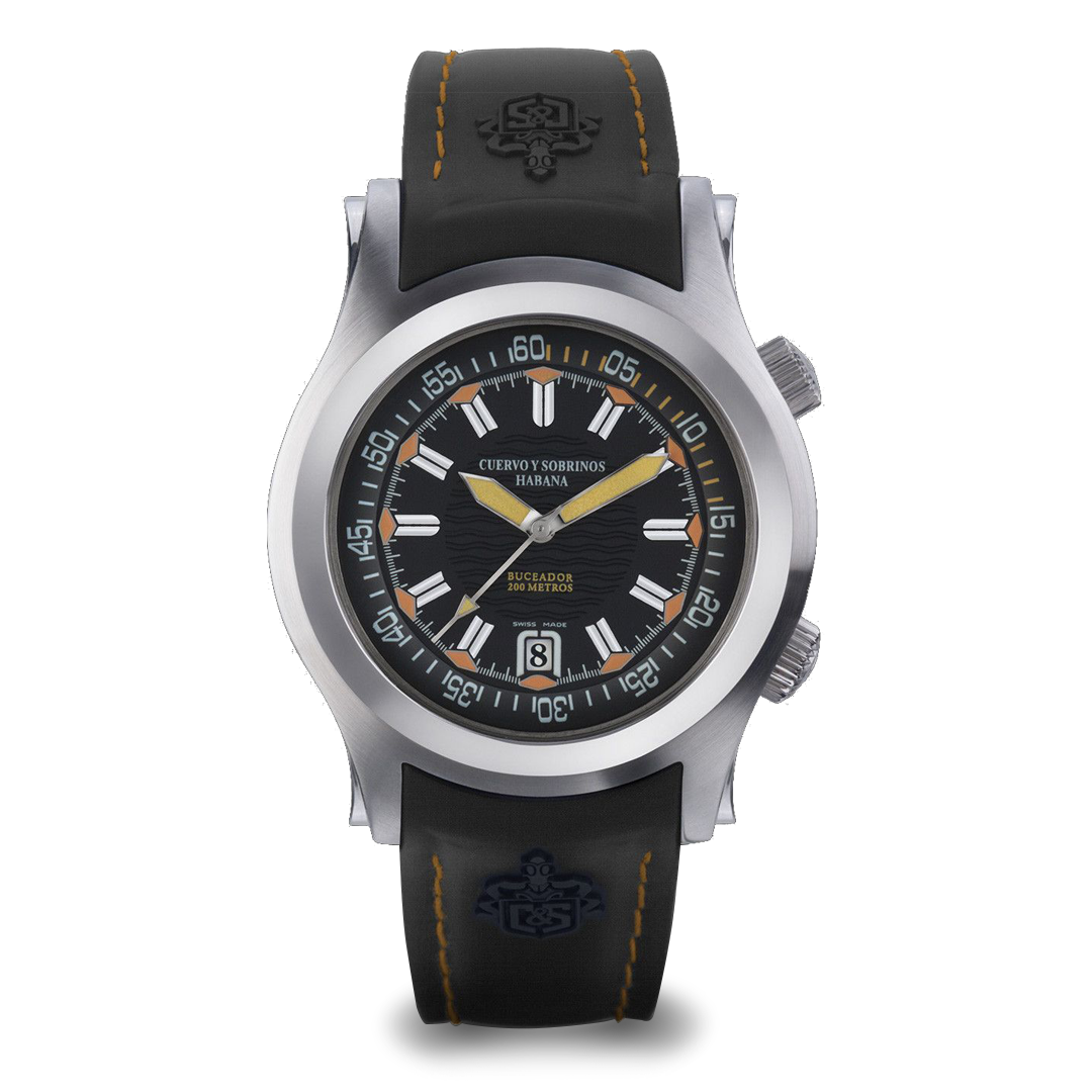 Las profundidades del mar fueron la inspiración para la creación del Buceador Robusto, un reloj deportivo moderno apto tanto para actividades acuáticas como para el uso diario. La caja unitaria, las dos coronas atornilladas y la base atornillada garantizan que el reloj sea completamente hermético hasta 200 metros. El tiempo de inmersión se muestra mediante una luna giratoria. Las costuras y el interior de la correa de caucho también son de color naranja.