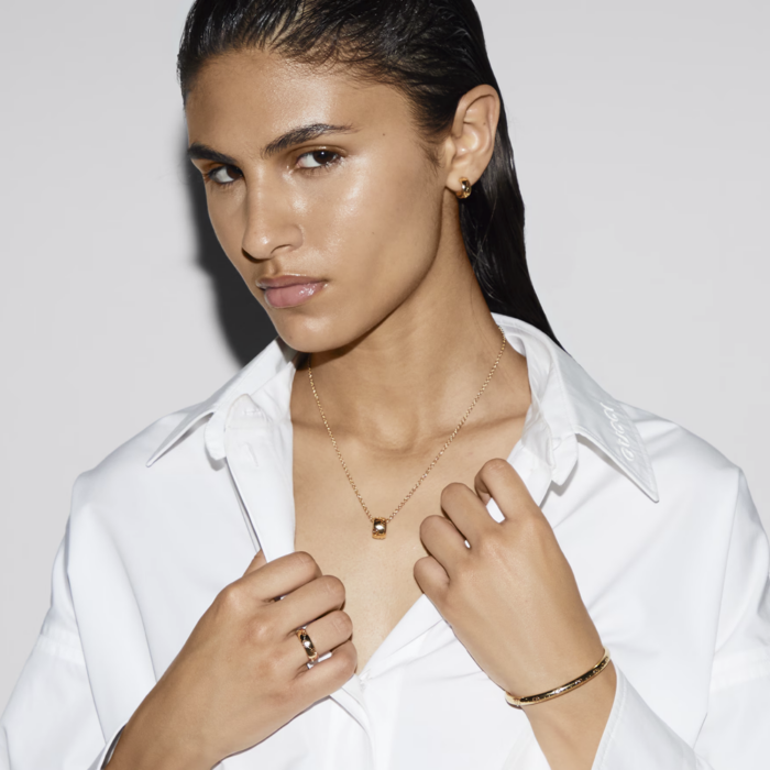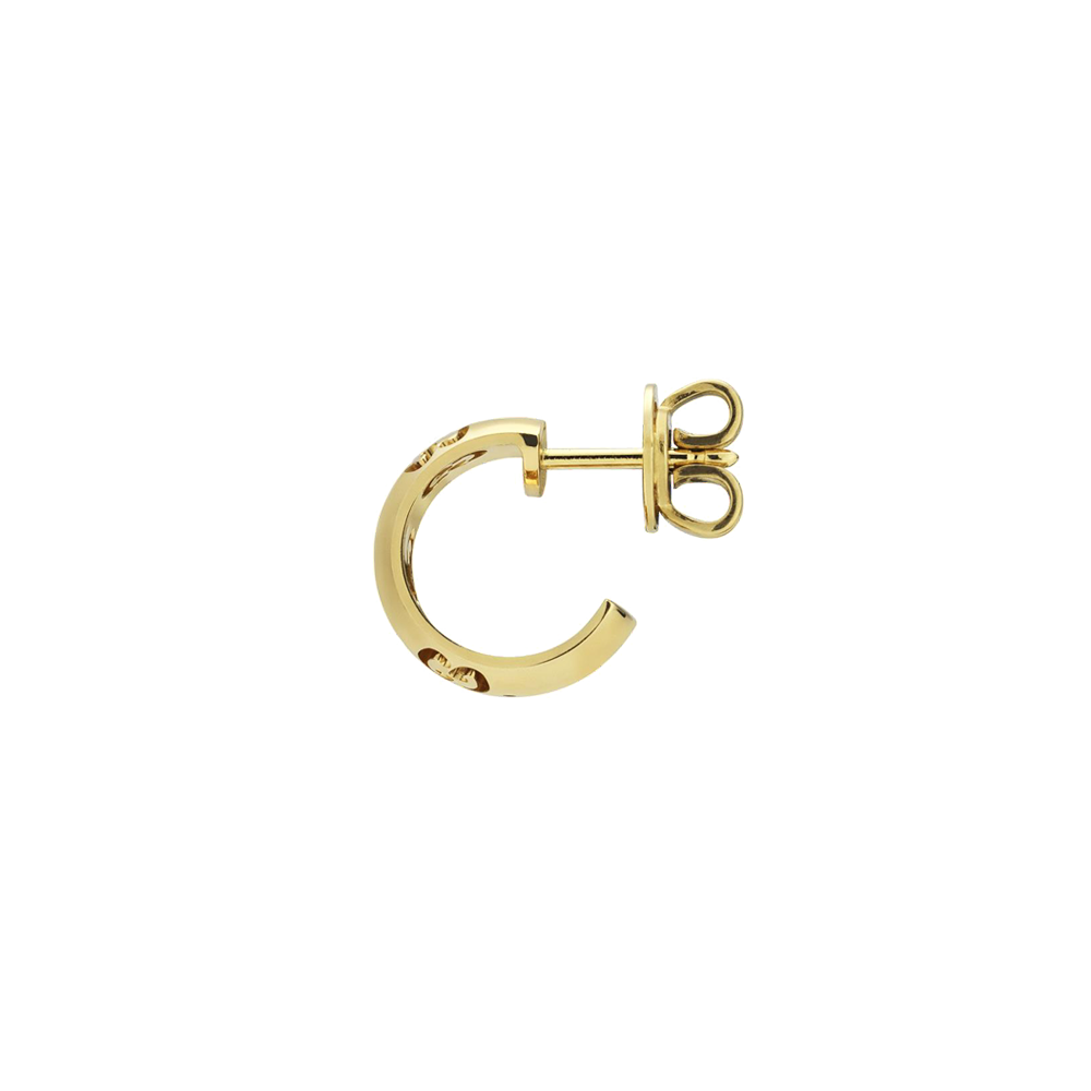 La nueva colección Icon de Otoño Invierno 2024, presenta un nuevo motivo GG perforado en las siluetas redondeadas. El característico símbolo de la Firma decora estos pendientes en oro amarillo de 18 quilates.