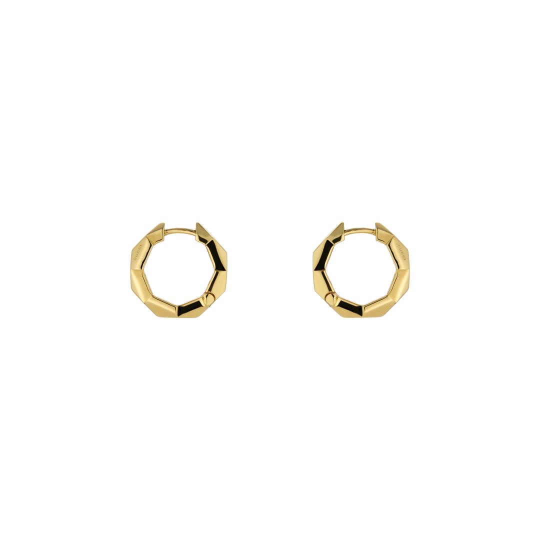 La línea Gucci Link to Love propone diseños contemporáneos en varios acabados dorados como parte de la colección Pre-Fall 2024. Con un diseño de tuerca que le confiere su forma geométrica, este par de pendientes de aro son el complemento perfecto para el día a día.