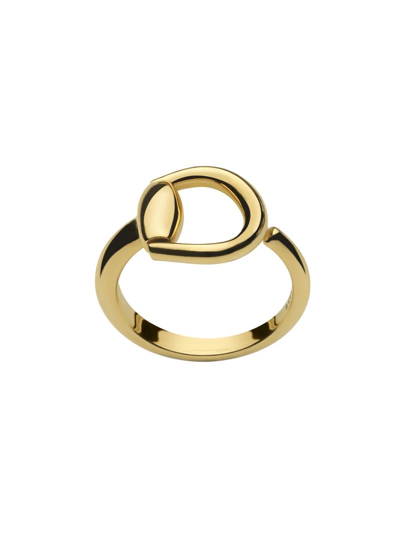 Gucci celebra el 20 aniversario de la exclusiva línea de joyas Horsebit con diseños clásicos y emblemáticos en oro amarillo de 18 quilates. Este anillo se realza con medio Horsebit que le aporta un toque exclusivo.
