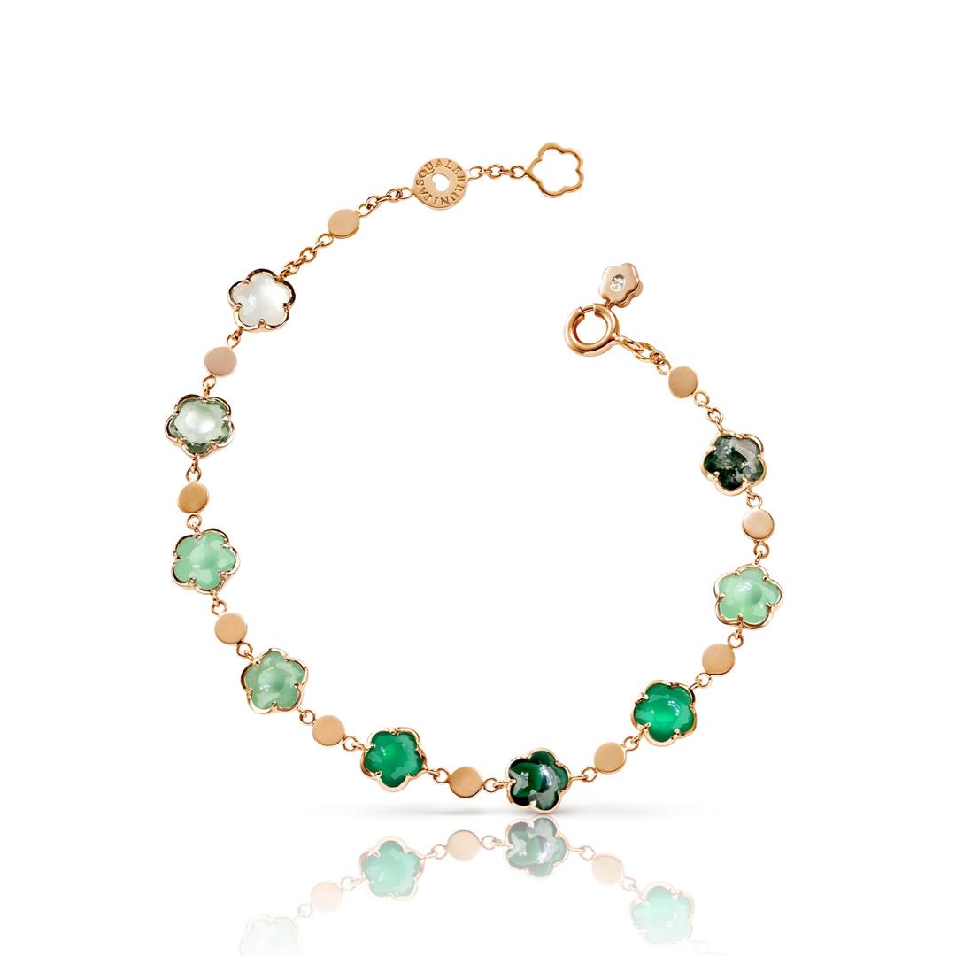 | Ágata verde, piedra lunar blanca, malaquita, crisoprasa, prasiolita, aventurina verde, ágata musgosa y diamante | |